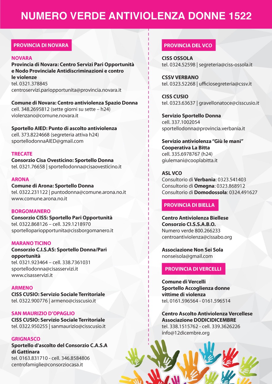 Sedici giorni di attivismo dalla giornata per l'eliminazione della violenza sulle donne alla giornata Internazionale dei diritti umani. Si illumineranno di arancione i Comuni di: Ameno, Armeno, Arona, Borgomanero, Borgo Ticino, Briga, Castelletto Ticino, Comignago, Cureggio, Gattico-Veruno, Gozzano, Maggiora, Miasino, Orta, Pella, Pettenasco, Pogno, San Maurizio d’Opaglio e le Caserme dei Carabinieri di: Alzo, Arona, Borgomanero, Borgo Ticino, Castelletto Ticino, Gattico, Gozzano, Orta.