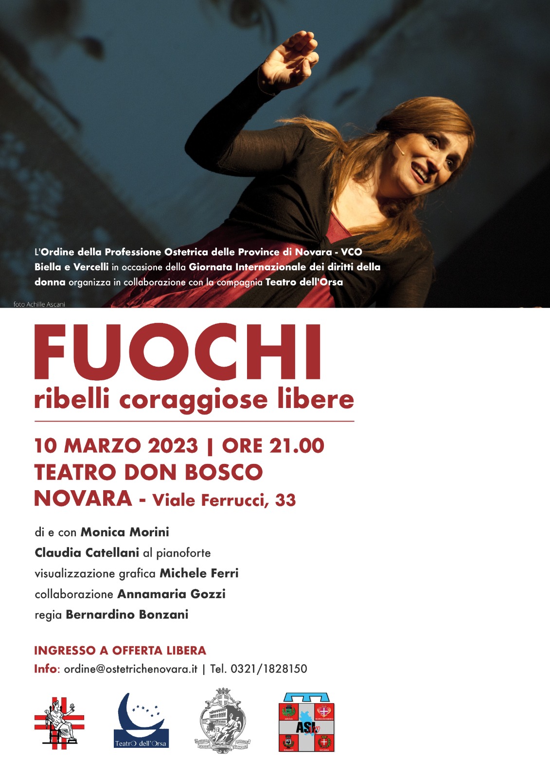 Per questa ragione l'ordine della professione ostetrica delle province di Novara, VCO, Biella e Vercelli ha scelto di celebrare la giornata internazionale della donna con lo spettacolo teatrale "Fuochi ribelli coraggiose e libere". Uno spettacolo che narra la storia di donne libere che con il loro coraggio e la loro forza hanno scardinato vecchi pregiudizi e aperto nuove strade sulle quali oggi tutte dobbiamo proseguire il cammino.
